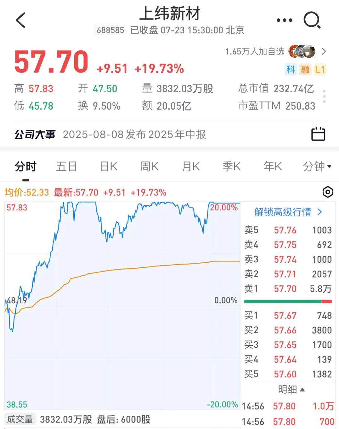 高位股上维新材“20cm”11连板失败