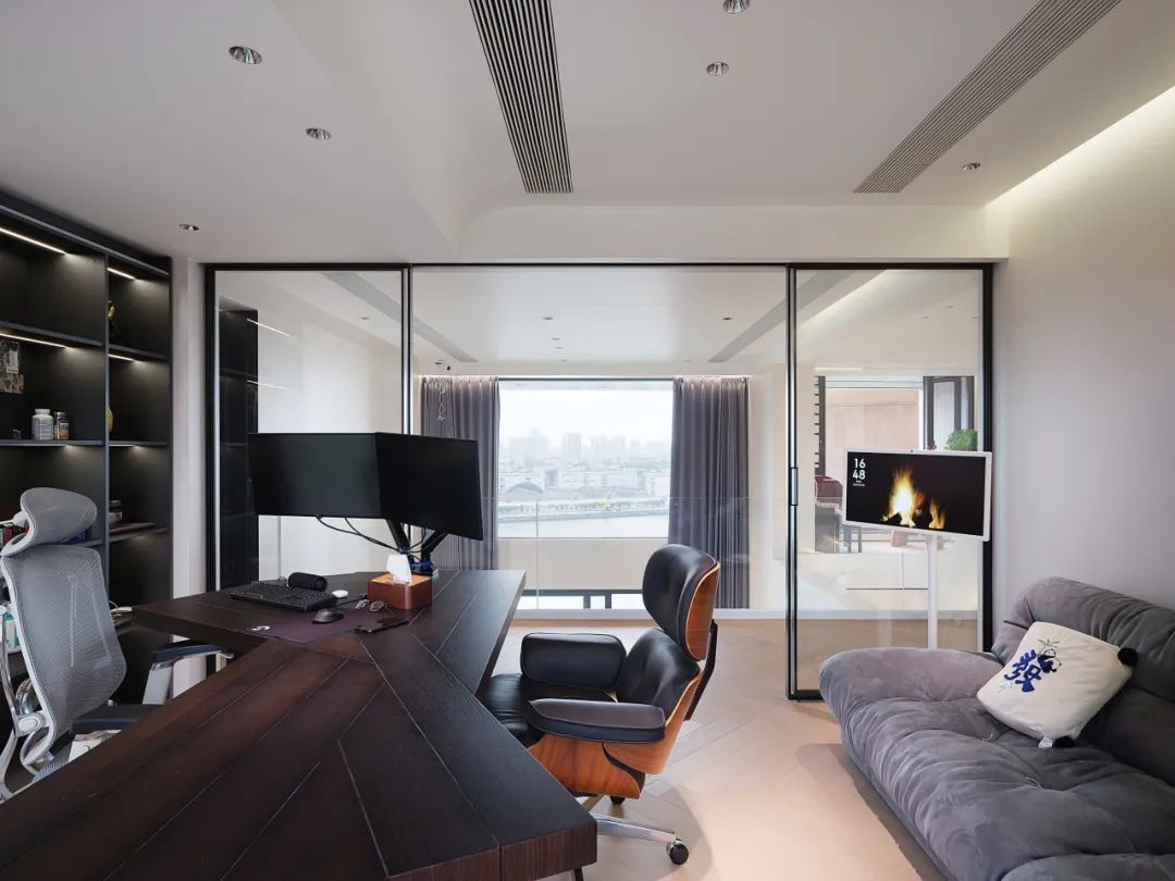 磁吸式玻璃隔断的设计,既保证了空间的私密性,又维持了视觉上的通透感。