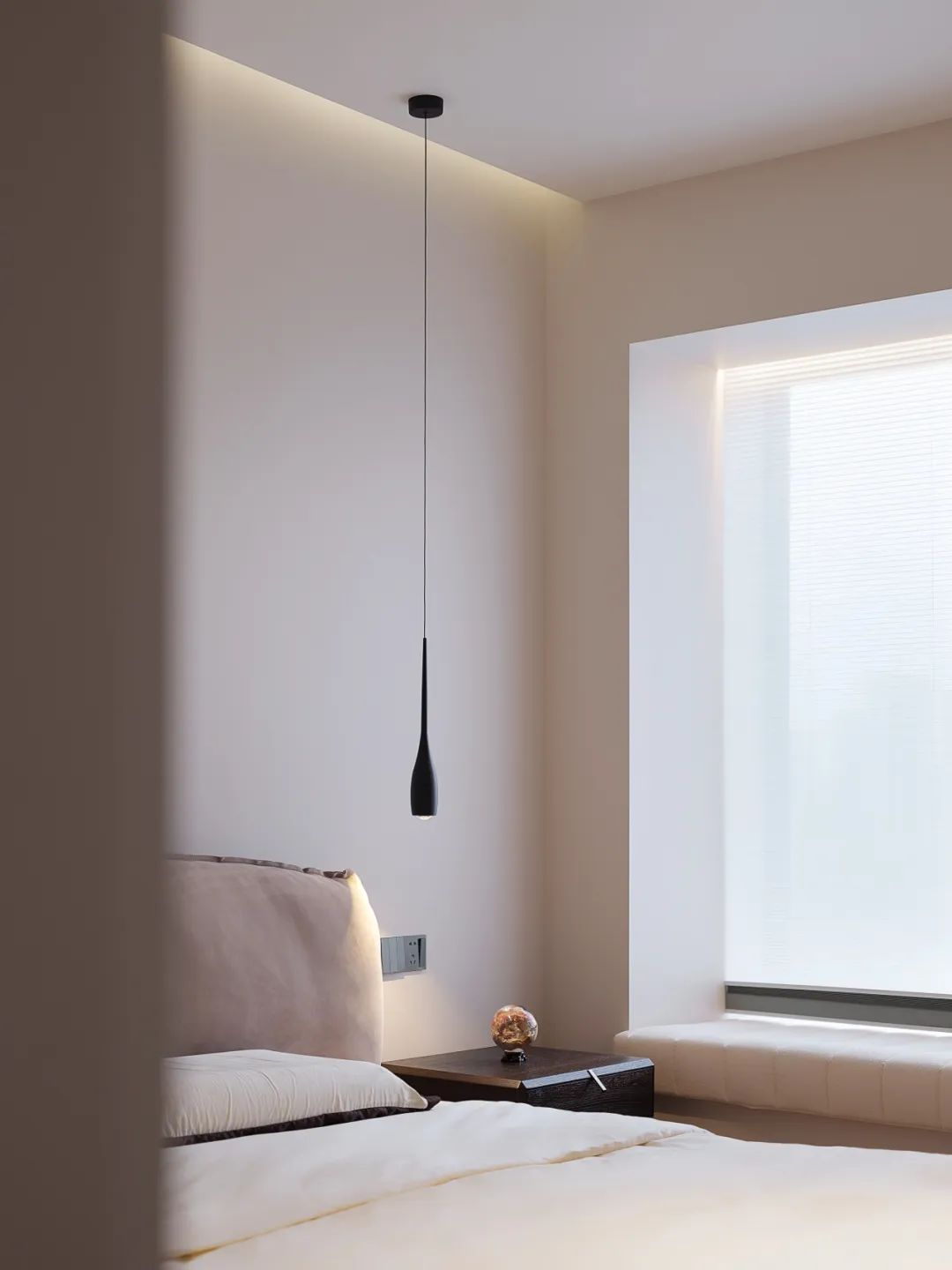 卧室采用无主灯设计,通过多层次光源营造舒适氛围。床头吊顶内嵌暖光灯带,搭配可调光筒灯和床头吊灯,满足不同场景需求。智能控制系统一键切换照明模式,实现从明亮到温馨的无缝过渡。