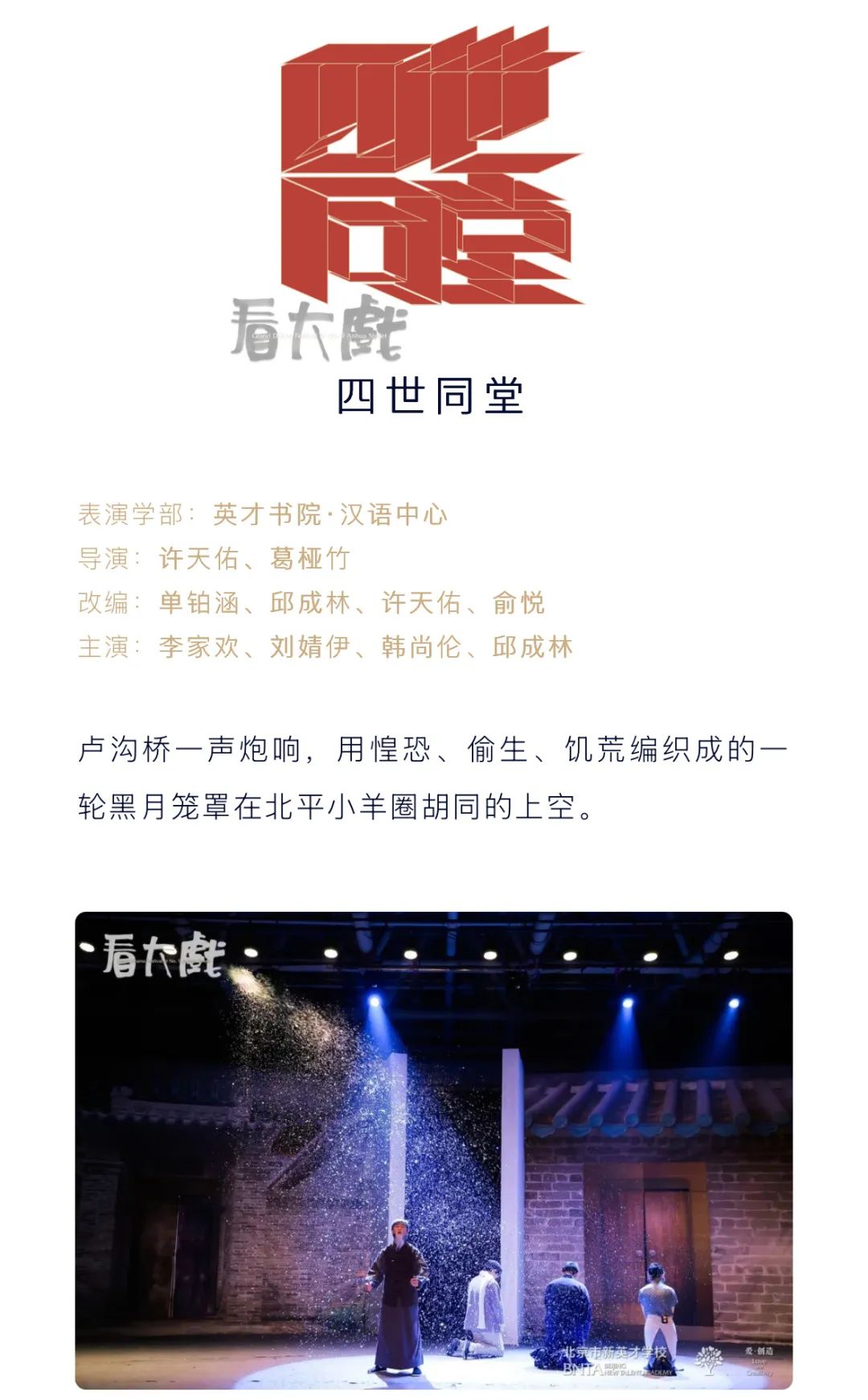 能力的成长也在课堂外延伸。高二时,单铂涵勇敢地挑起了学校年底大戏《四世同堂》编剧的重担,从剧本创作到最终舞台的完美呈现,他全程深度参与。