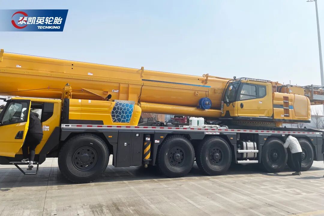 本次展会,泰凯英精准聚焦露天矿运输、重型起重作业两大核心场景,集中展示适配铰链式自卸卡车、非公路宽体车、全地面起重机等设备的专用轮胎方案,直观呈现其在矿建领域的技术积累与产品实力。作为泰凯英全地面起重机轮胎的“王牌产品”,ETCRANE 系列凭借国际顶尖的胎面温控技术与稳定可靠的性能,现场收获大量客户关注。该系列已实现 385/95R24 至 525/80R25 全规格覆盖,不仅深度配套徐工集团、三一集团、中联重科等国内头部起重机制造商,更成功为多田野(Tadano)、马尼托瓦克(Manitowoc)等国际品牌提供定制化轮胎解决方案,成为全球起重设备领域的 “信赖之选”。泰凯英 ETCRANE 起重机专用轮胎