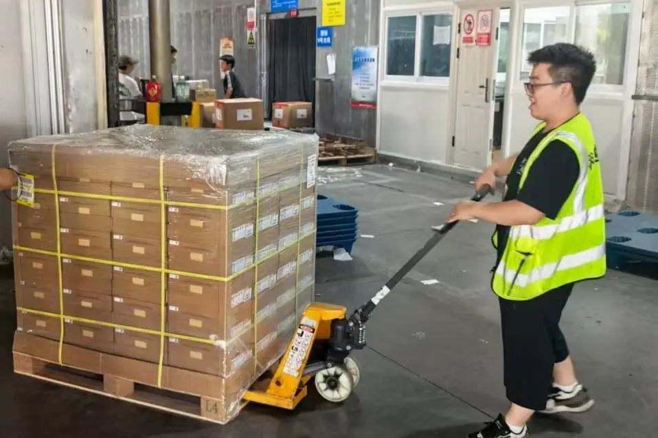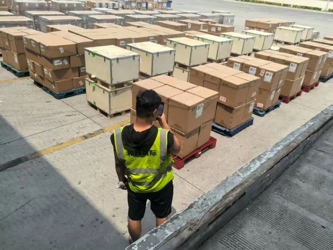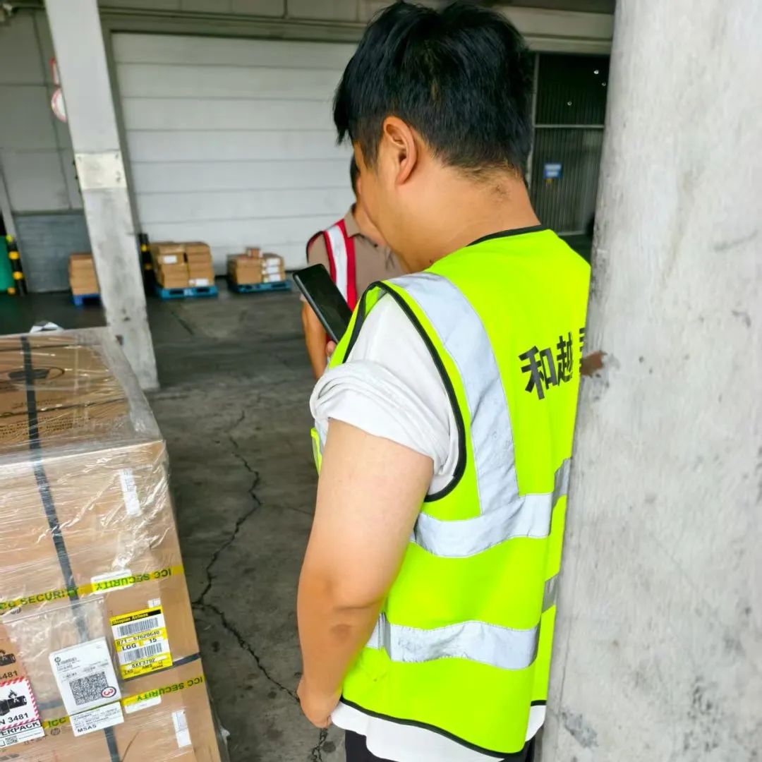 为了保障客户订单按时交付,和越国际的团队成员们展现了高效的工作效率和出色的团队协作能力。在货站库区,现场人员正忙碌地搬运货物、进行货物组装,尽管烈日炎炎,和越人依然挥汗如雨地穿梭作业。大家分工明确,紧密配合,各个环节衔接流畅,有序地推进任务。