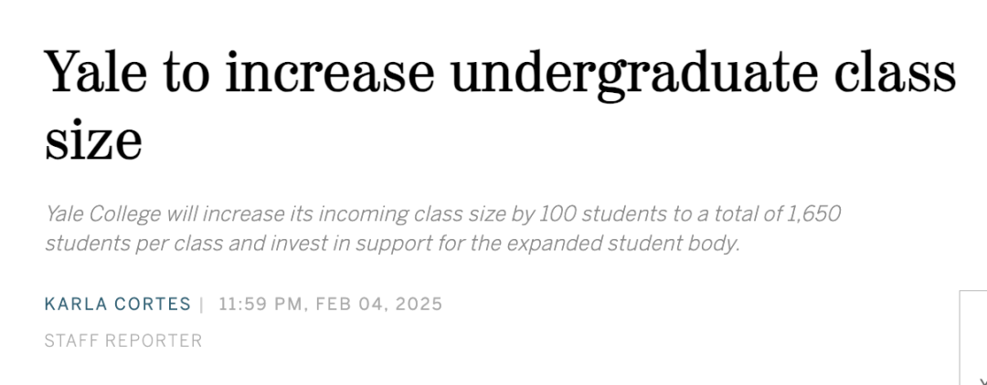 今年秋季,斯坦福大学已经将本科入学人数增加了约150人,还放出重磅消息:正在研究进一步扩大本科生人数。而耶鲁大学从今年秋季入学的2029届学生开始,将每年扩招100名学生。