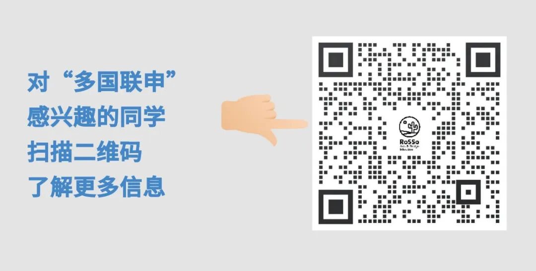 而RoSSo国际艺术中心拥有众多Top国际知名综合/艺术院校导师和外籍导师,具有庞大的信息收集和处理能力,帮你省时省力的同时,还可以为你匹配最合适的多国联申方案,增加拿到Offer的概率。