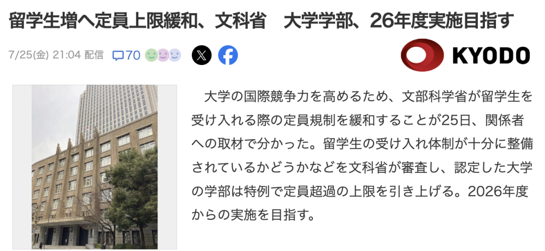 近期,文部科学省还出台了新的招生政策,通过放宽现有招生名额限制等措施,着力提升日本高等教育的国际竞争力。