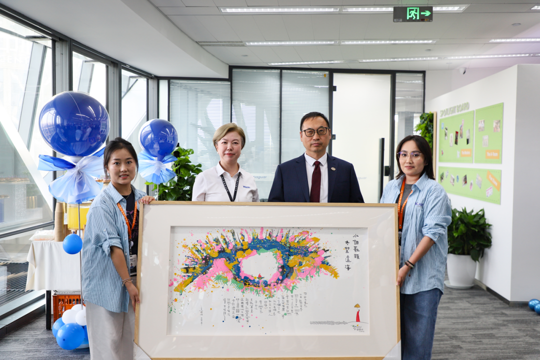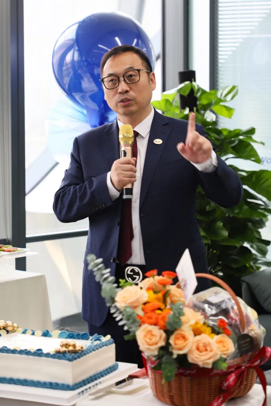 吴绍勇先生致开场辞,代表集团赠送了艺术作品,嘱托北京公司“乘风而上,扶摇万里”;李春媛女士则带大家重温了“团队从 0 到 50+”的成长岁月,致敬每一位同行的“嘉”人。