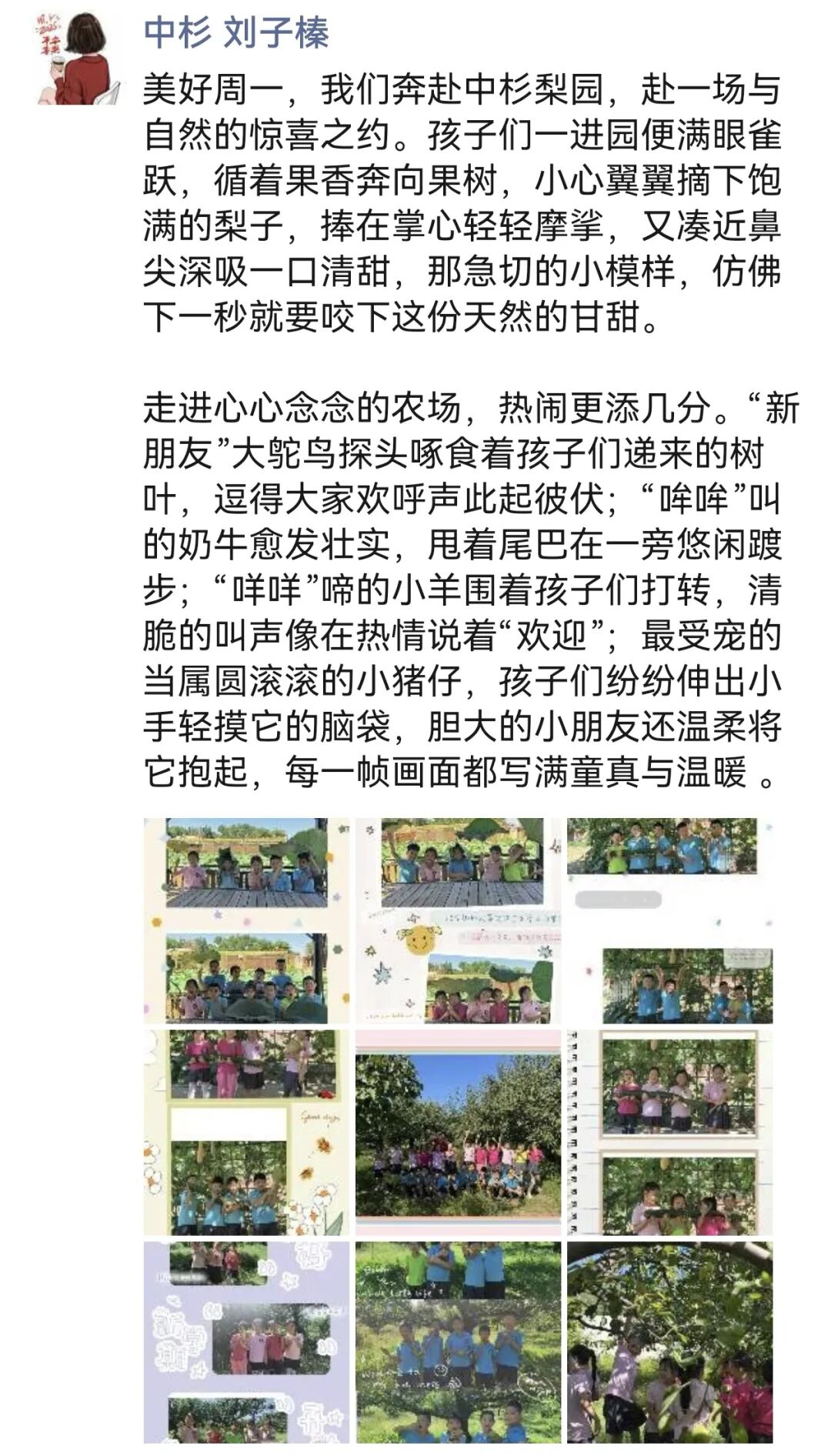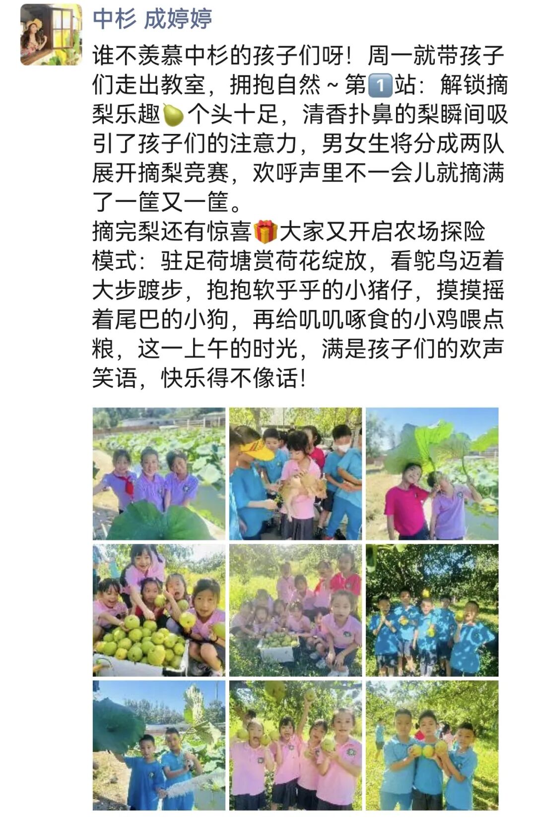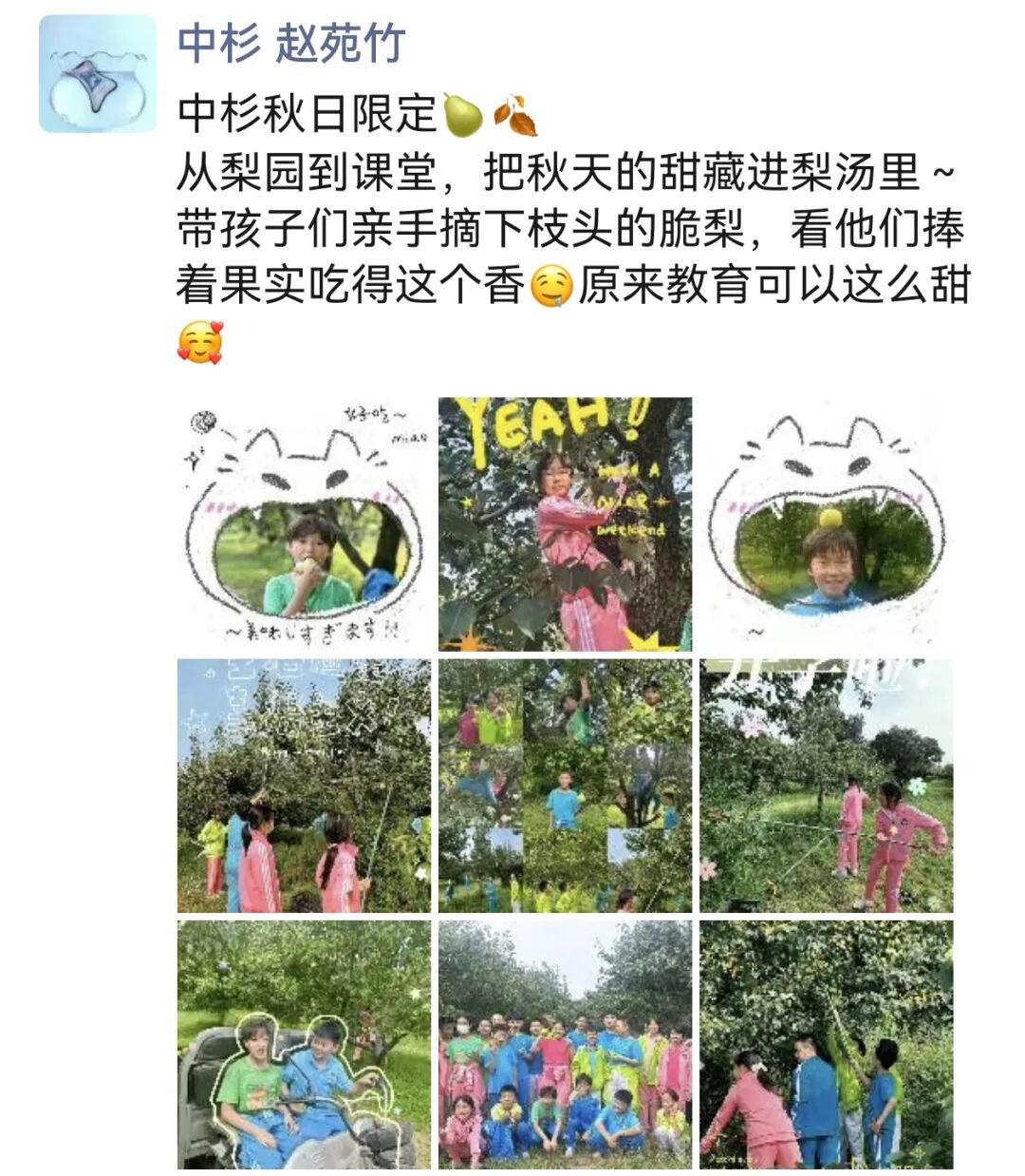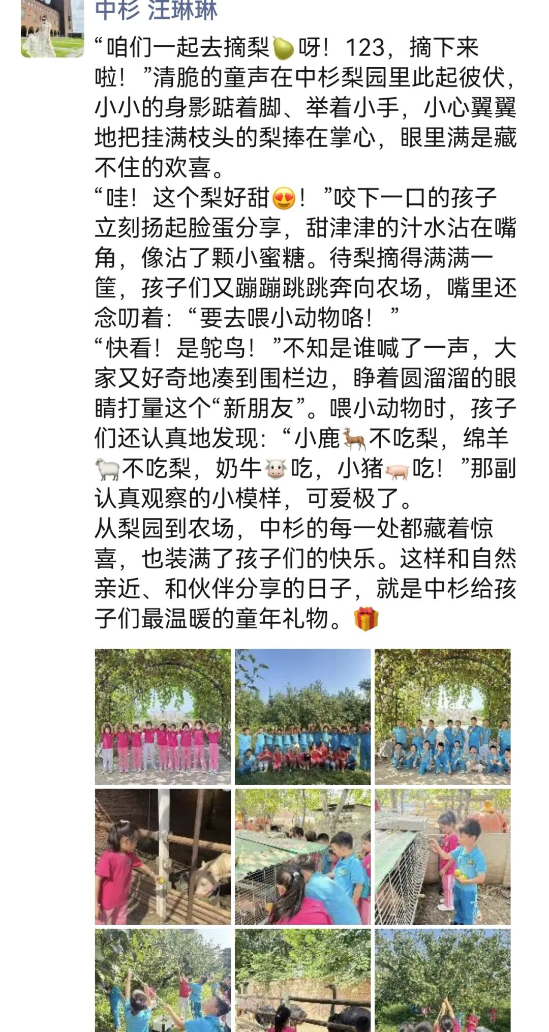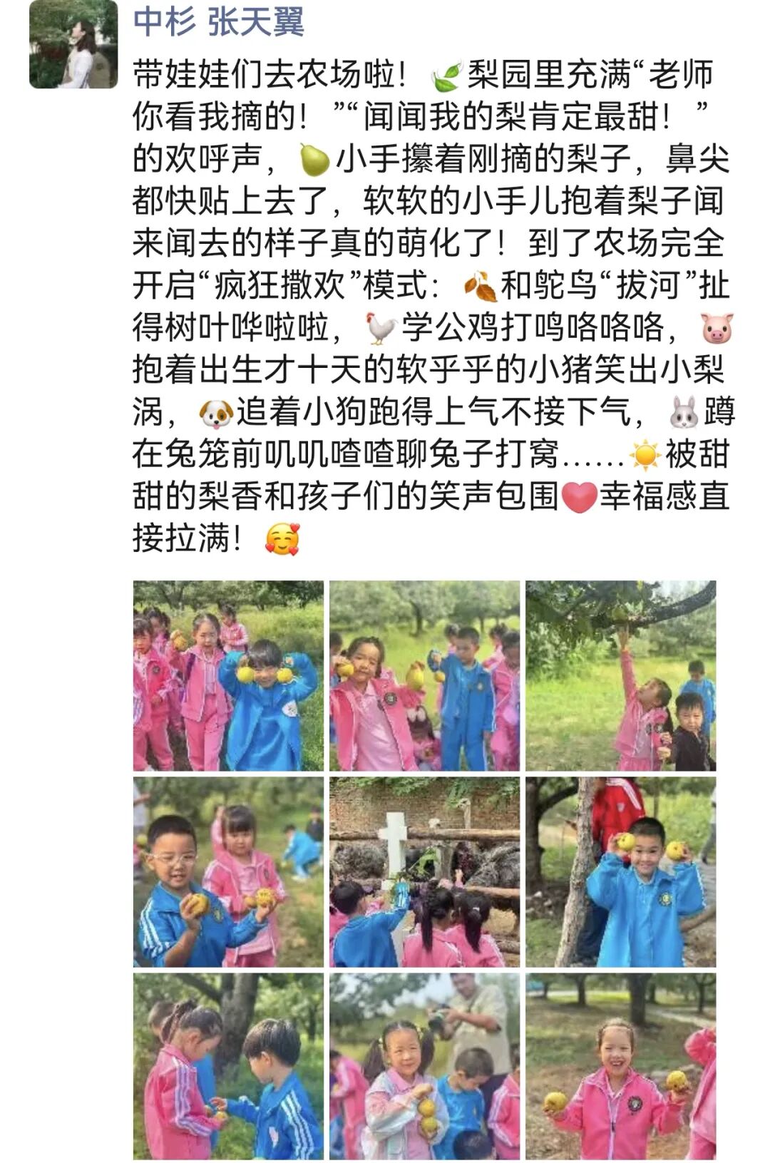 那真是一场欢快的摘梨体验!天是那么高,风是那么清爽,阳光洒在一个个正在摘梨的中杉学子身上,耳边还能听见云雀在歌唱。当我看见学长学姐在摘梨时,就也想去梨园摘一个又一个又大又圆的梨!