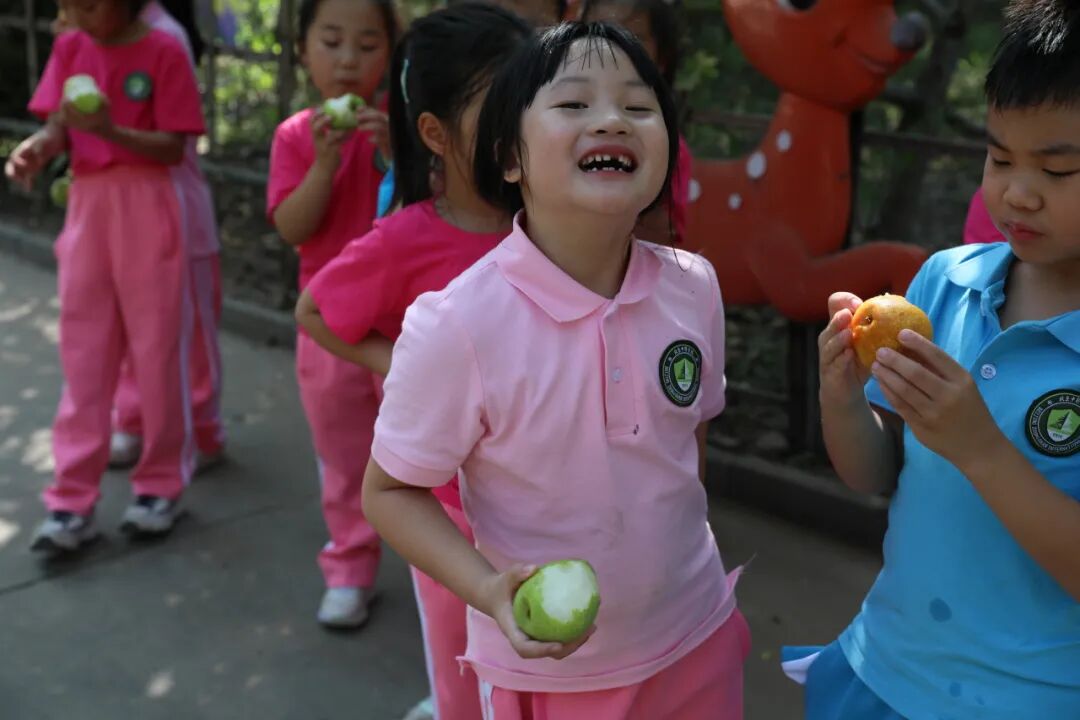 我吃着亲手摘的梨,心里甜滋滋的。谢谢梨园的老师们日日夜夜付出的汗水,让我们吃到全世界最甜的梨!