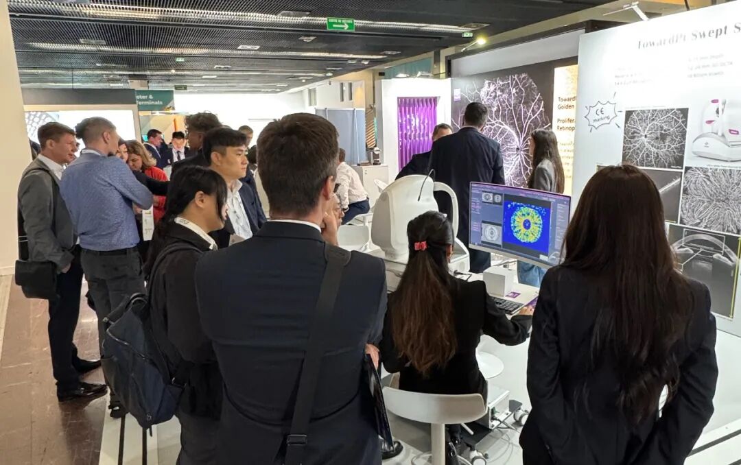 自从2024年八月图湃全域扫频OCT产品正式取得欧盟CE认证后,一年时间内图湃OCTA在海外装机量已突破百台。这一年内,图湃始终坚持打磨产品性能,积极响应客户反馈,用高效的“中国速度”和硬核技术赢得了海外客户的好口碑,更是成为客户心中“Ultrawide(超广角)”的不二代言人;如果说去年图湃还是海外客户眼中的“新人”,那么今年我们惊喜的发现,客户的脸上甚至多了一丝丝炫耀和自豪:“我买的机器下周就要装机了,所以我想了解更多关于使用的技巧”“我已经用了一段时间,图像实在太棒了!xx功能我还想了解再多一点”“你们的功能升级太快了!能不能和我仔细讲一讲?”……休息间隙自然也少不了外国同行们纷纷的慕名登门造访参观。