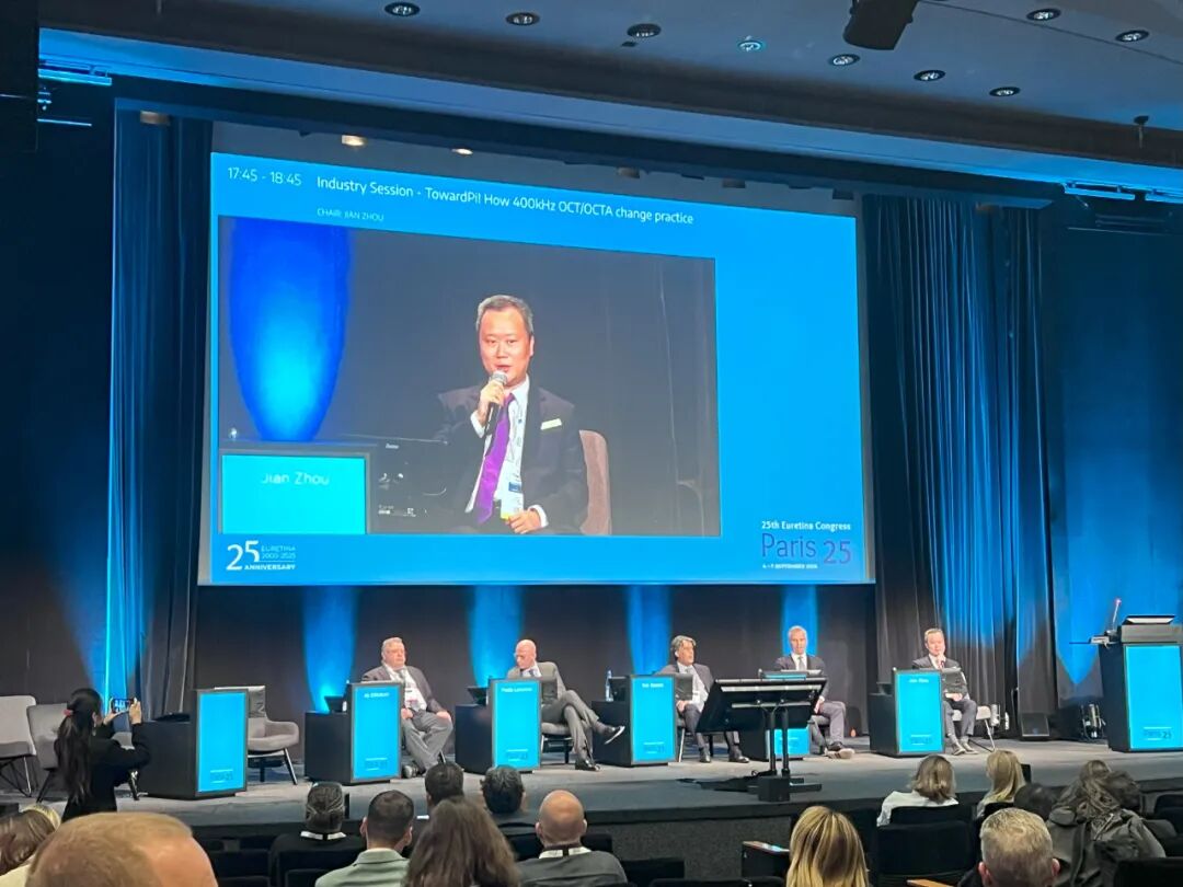 瑞士巴塞尔大学医院Peter Maloca教授、法国黄斑联盟学会创始主席Eric Souied教授、意大利乌迪内大学IEMO(欧洲眼显微外科研究所)Paolo Lanzetta教授和法国巴黎拉里布瓦西埃医院Ali Erginay教授,以及图湃全球事务部副总周健先生共同探讨图湃超广角全域扫频OCTA技术将如何颠覆眼科临床。