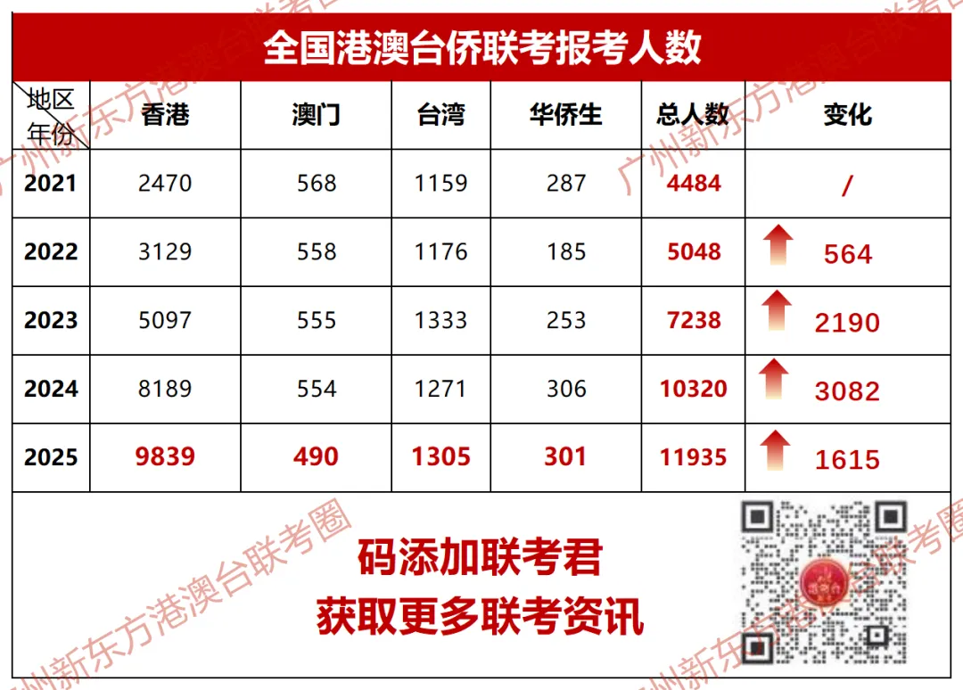 近几年港澳台联考人数越来越多,加上25年联考分数线上涨幅度,无疑增加了考生和家长对于考试难度和录取率的担忧。