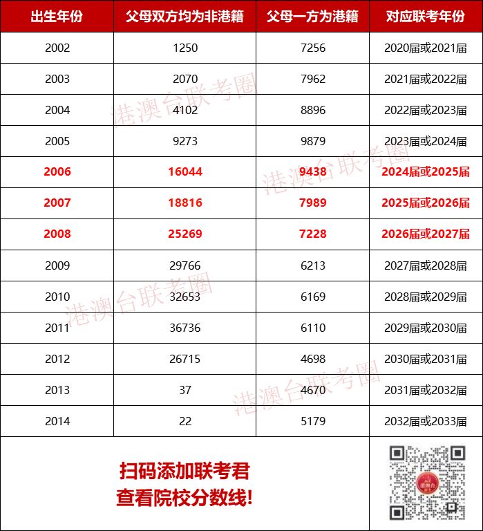 从表中可以看到,双非港宝在2006年开始激增,对应的为25、26、27届的联考生。