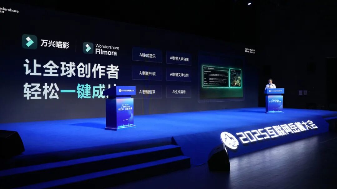 AIGC软件A股上市公司万兴科技(300624.SZ)连续第七年受邀参会,携旗下AI原生应用创新成果重磅亮相大会,以领先AI技术赋能全球创作者生态,成为大会焦点之一。