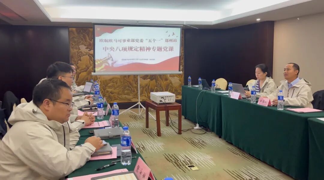 为持续巩固党的中央八项规定精神学习教育成果,推动党建工作与生产经营深度融合,助力“二次创业”战略目标实现,10月17日,欧航欧马可事业部党委在河南郑州组织开展了以“豫见国典·擎红跃升”为主题的“五个一”党建走一线郑州站活动。事业部党委副书记、纪委书记、工会主席王富利带队,河南大区营销一线人员、党群与运营管理部相关人员共同参加。