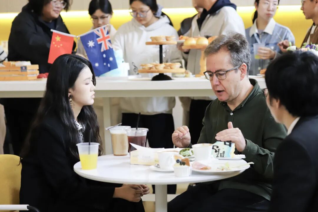 在随后的冷餐交流会上,没有刻板的寒暄,只有音乐与文化的自然流淌。同学们用略带青涩但真挚的语言向教授介绍自己的专业方向:有的钟情钢琴演奏的细腻表达,有的痴迷民族音乐的独特韵律,有的好奇国际乐团的协作模式……卢克·多尔曼教授认真倾听,时而点头微笑,时而分享自己的经历。他鼓励同学们保持对音乐的热爱,勇敢探索不同风格的融合。