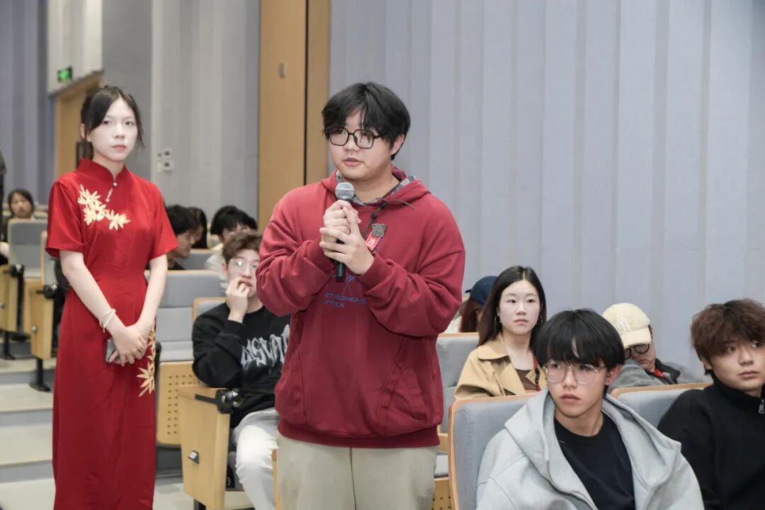 宣讲会问答环节,现场交流热度攀升。学生们围绕留学相关话题积极提问。卢克·多尔曼教授全程专注倾听,结合自身多年指导国际学生的经验逐一回应,既从专业学习角度给出针对性建议,也从跨文化适应、实践资源对接等维度提供实用指导。