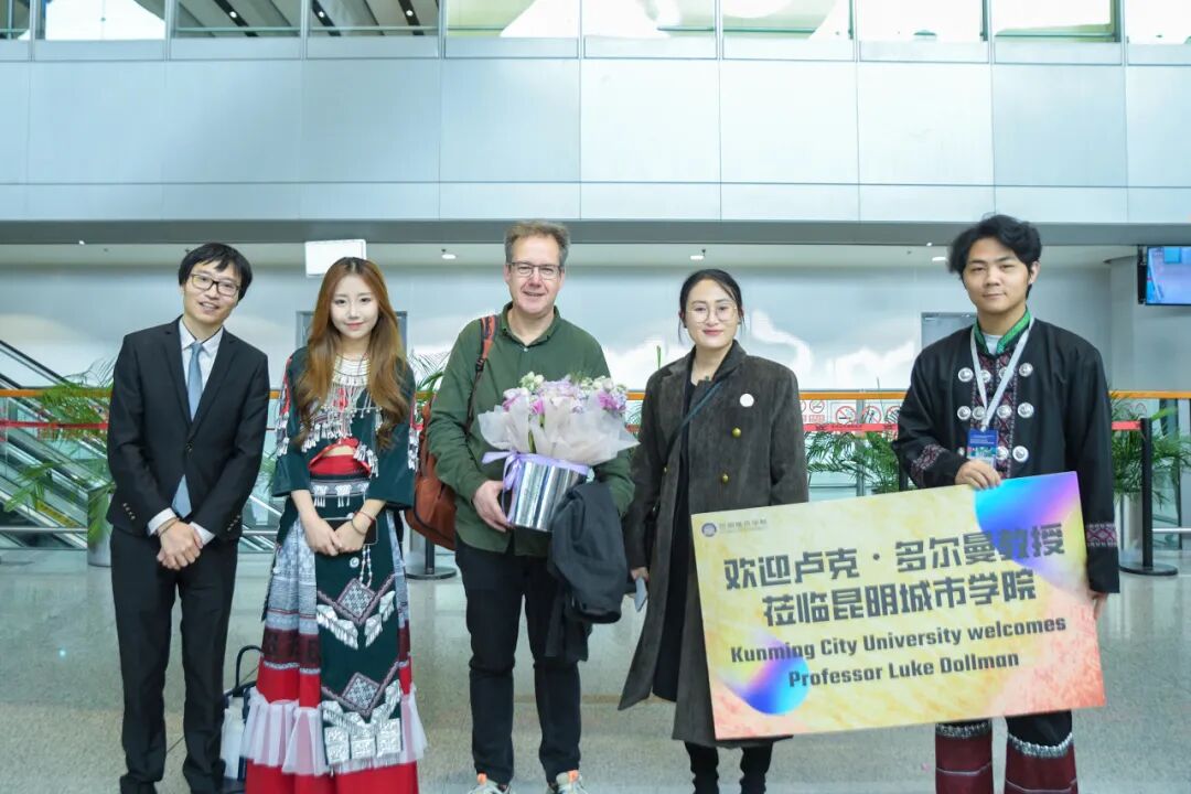 10月23日,昆明城市学院师生代表手捧鲜花,热情迎接远道而来的客人——澳大利亚阿德莱德大学音乐学院副院长卢克·多尔曼教授,此次到访,不仅彰显了学校对国际交流与合作的高度重视,也展现出昆城学子积极开放、热情好客的校园文化风貌。绽放的笑容与芬芳的花束,共同为接下来两天的深度交流活动拉开了温暖而美好的序幕。
