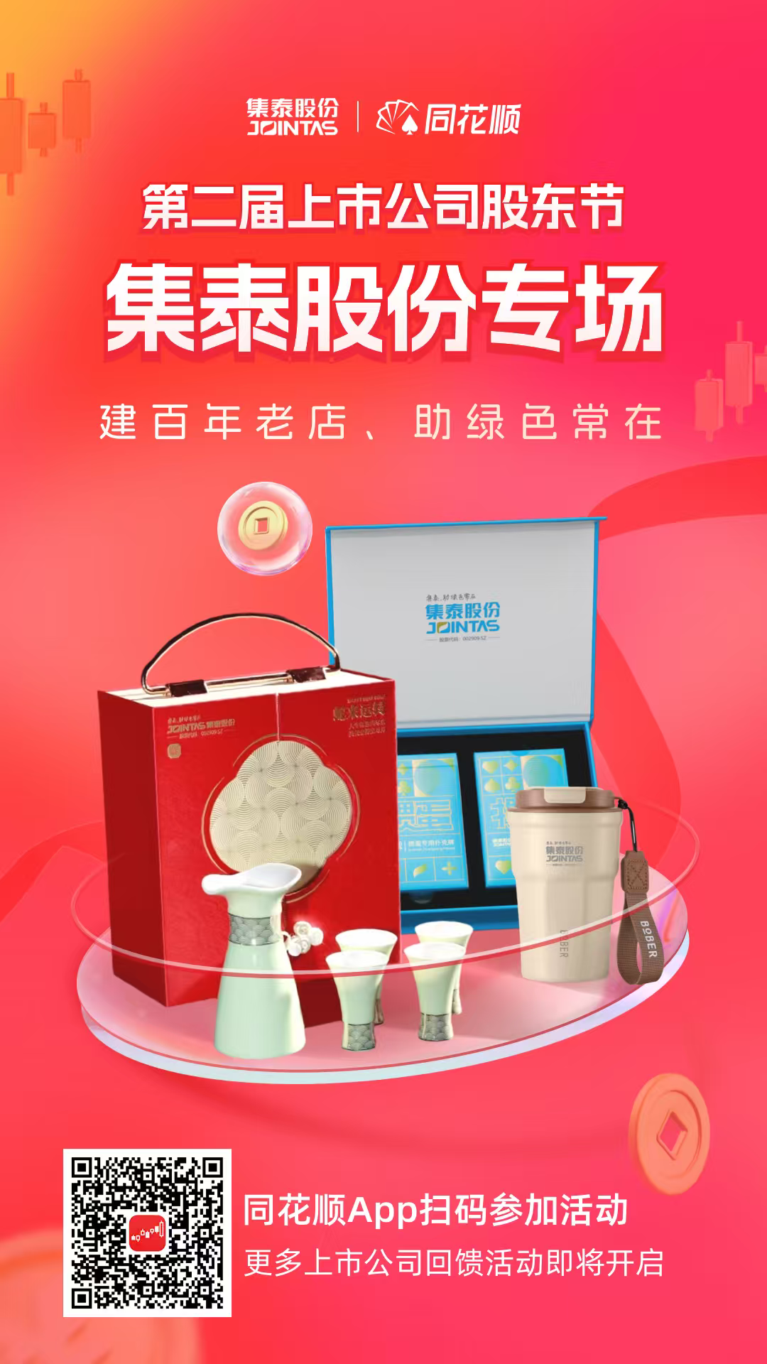 1、进入专场活动页:同花顺App搜索“集泰股份”“股东节”或扫描上方海报二维码;