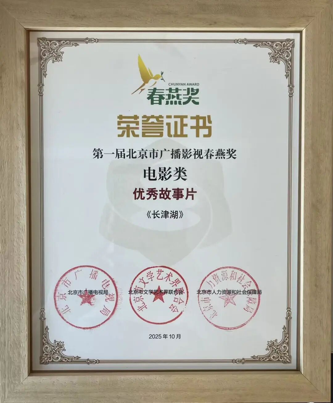 10月27日,由北京市广电局、北京市文学艺术界联合会、北京市人力资源和社会保障局联合主办的第一届北京市广播影视春燕奖评选结果正式揭晓。“春燕奖”是经北京市委、市政府批准设立,北京地区唯一由政府主导的广播影视类综合性奖项,具有权威性、激励性、规范性和导向性,对引领行业发展、激励精品创作具有重要意义。评奖范围为2019年1月1日至2023年12月31日期间首次播映的广播影视作品及其主创人员。博纳影业集团出品的《长津湖》《长津湖之水门桥》《中国机长》三部力作同时荣获“优秀故事片”奖项。