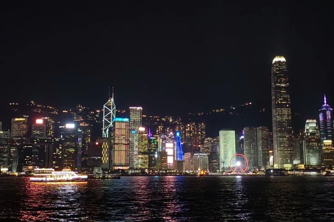 香港的维多利亚港夜景非常惊艳,当然要拍照留念
