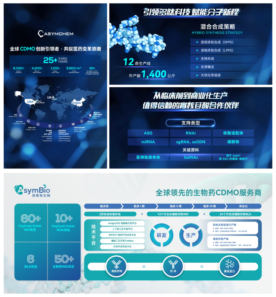 凯莱英生物是凯莱英医药集团(股票代码:002821.SZ/6821.HK)战略新兴业务,聚焦于生物药CDMO服务。凭借先进的技术平台以及丰富的项目经验,为全球客户提供各类新型偶联药物、抗体和重组蛋白药物等一站式CDMO解决方案,具备早期研发、工艺开发、毒理批次、临床批次和商业化批次生产的端到端服务能力。凯莱英生物致力于成为全球生物药客户值得信赖的合作伙伴,赋能全球生物医药创新,加速药品上市进程。更多信息,请访问:www.asymbio.com.cn