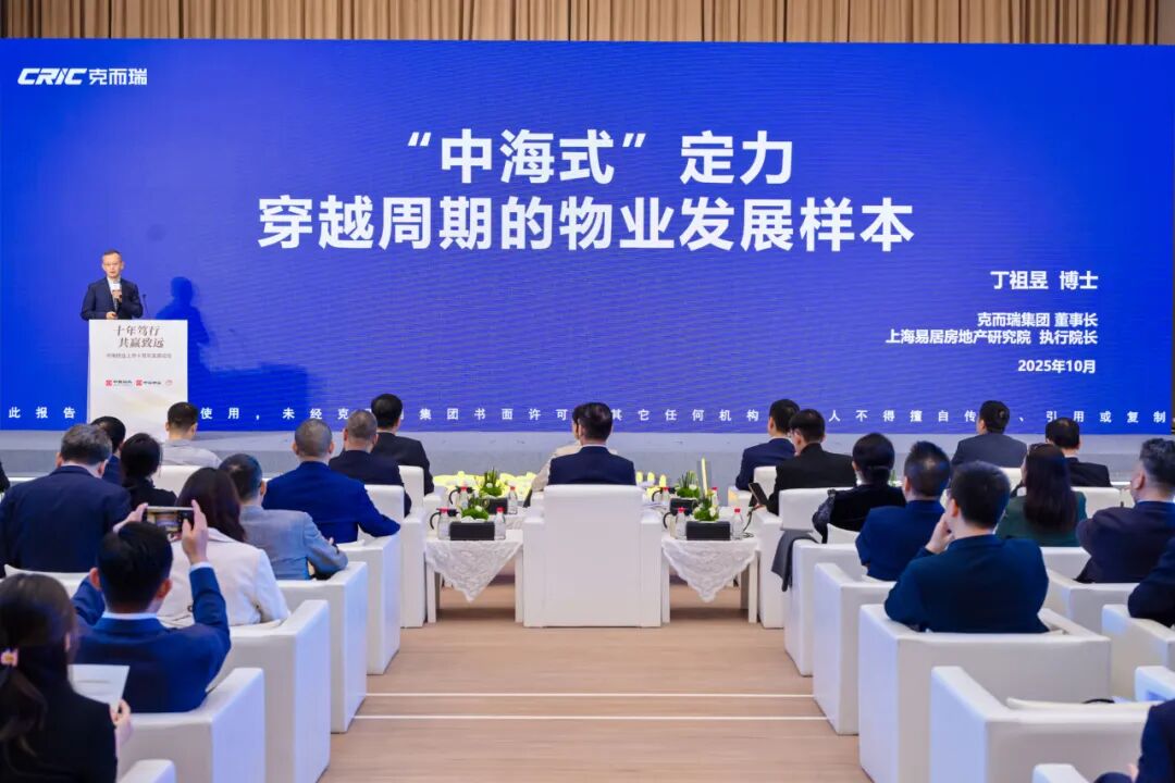 克而瑞董事长丁祖昱进行主题演讲《“中海式”定力:穿越周期的物业发展样本》。他指出,过去十年是物业行业从“资本热潮”到“理性回归”的十年。中海物业能够实现跨越式发展,归因于其穿越周期的“中海式”定力:市拓定力,坚持发展独立拓展能力;服务定力,坚持让价值服务落到实处;运营定力,坚持将每分钱花在刀刃上;他认为,正是这种用时间换空间的稳健型发展,让中海物业成为穿越周期的物业发展样本。未来,面对人的服务、空间焕新与城市运营三大结构性机遇,中海物业同样展现了清晰的战略定力,凭借“点-线-面”的长期深耕,构筑了体系化发展的坚实基础。