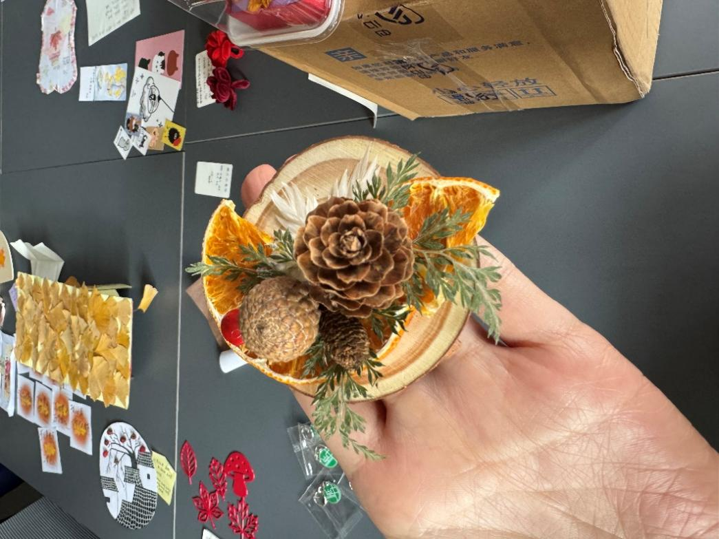随着活动的深入,同学们将笔下的秋色转化为独具特色的文创作品:精致的秋日钥匙扣、创意十足的秋叶帝王帽、雅致的季节冰箱贴...... 每一个文创产品都在述说着自己散文里的秋日世界,实现了文字与产品的链接。用手里的积分兑换别人的秋天,装点自己的世界。