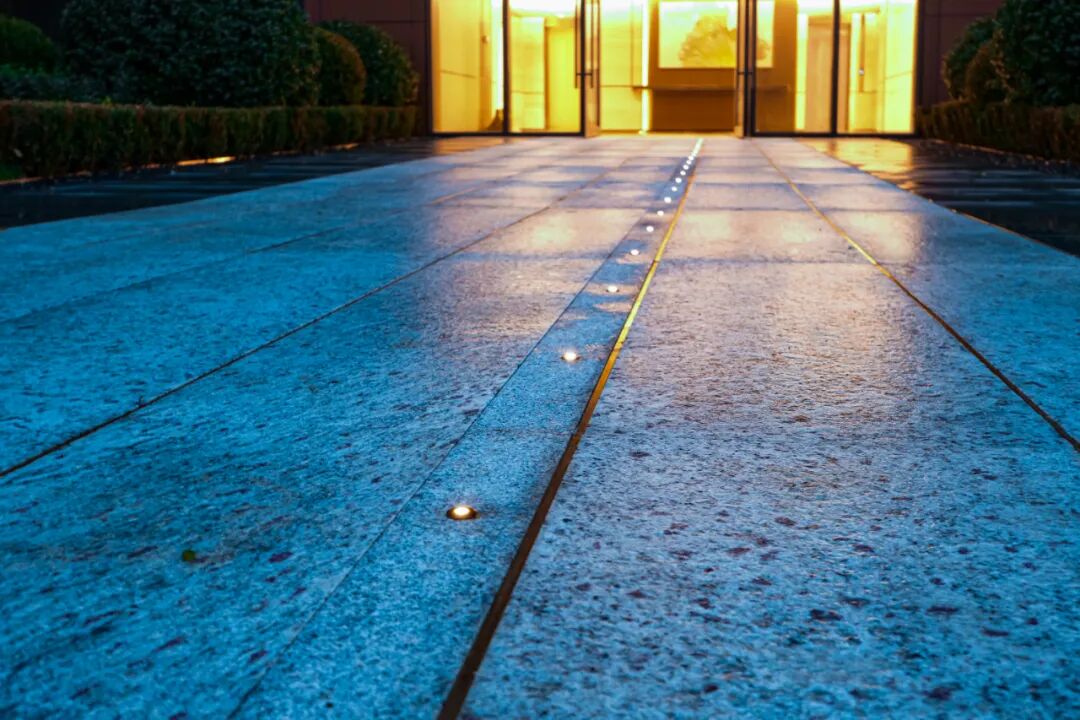 您注意到高级酒店才能看到的地面引导光吗?项目团队选用的龟背灯正是扮演这个角色。它被巧妙地嵌入到步道,它的光柔和地从地面漫出,不会直射人眼,却能清晰地勾勒出每一步的安全边界。这种低调而精准的指引,既保障了夜间行走的绝对安全,也无声地定义了社区的尊贵动线。