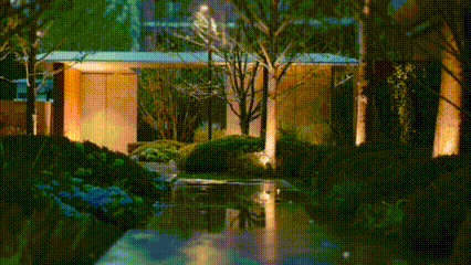 项目设计师用光影勾勒出园区的永恒之美,为业主营造出安全、舒适、充满情感共鸣的夜间桃源。光与影在空间里流淌,织就一幅现代东方禅意生活画卷。