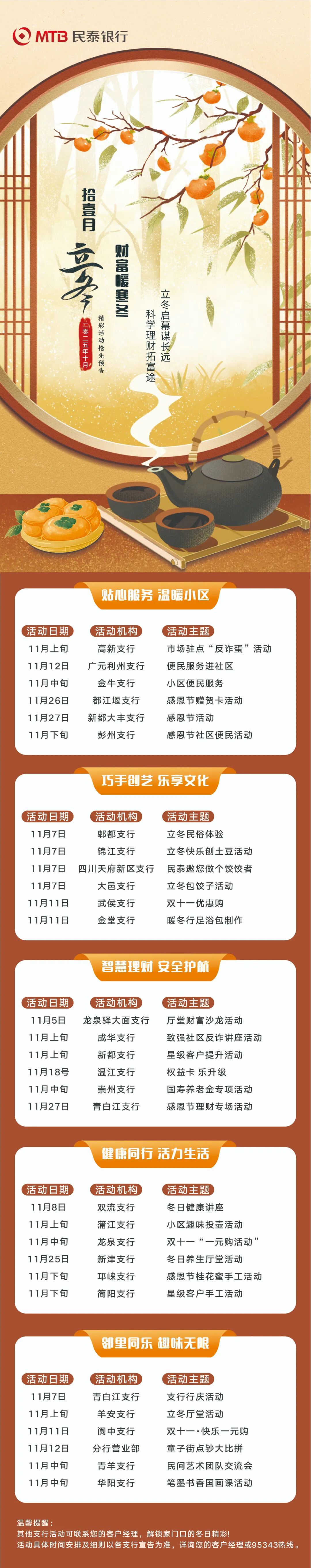 拾壹月立冬 财富暖寒冬——民泰银行成都分行2025年11月精彩活动抢先预告
