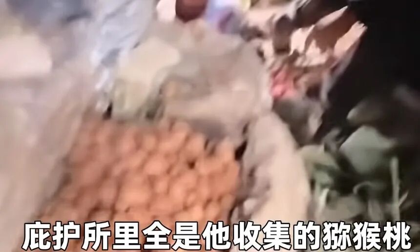 他的庇护所里,收集来做口粮的猕猴桃已经有满满一大袋子了。