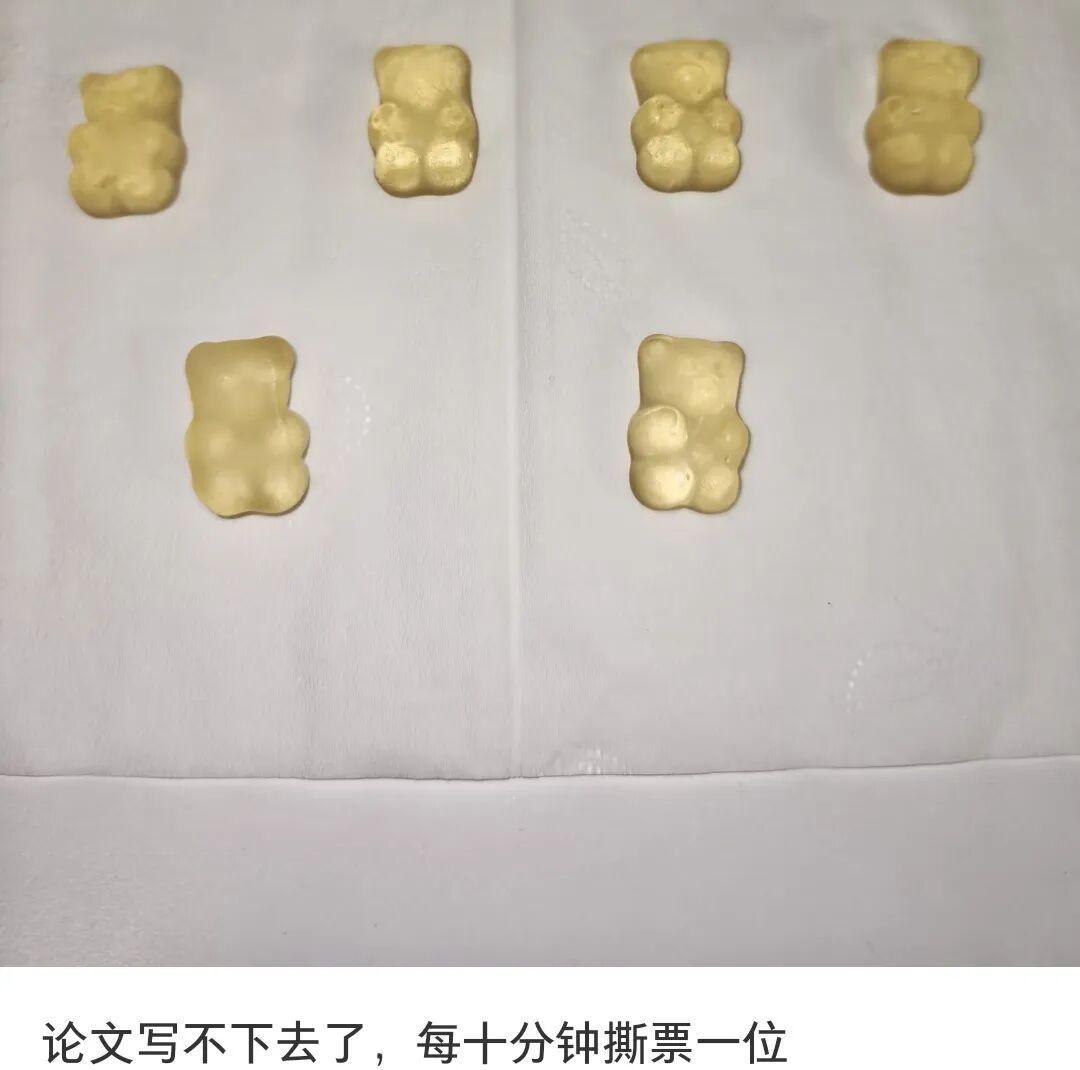 论文写不下去了,开个记录帖,这七只小熊软糖,每十分钟撕票一位。