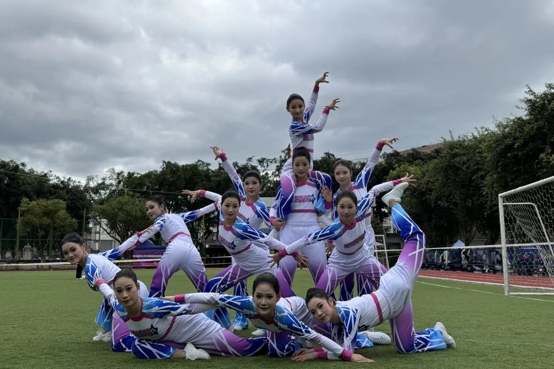 赛场上,昆明传媒学院代表队的队员们以饱满的热情、昂扬的斗志闪亮登场。他们的动作规范有力、舒展流畅,队形变换默契娴熟、错落有致,将健美操的活力与啦啦操的激情展现得淋漓尽致。经过多轮激烈比拼,队员们凭借扎实的功底、出色的发挥和稳定的表现,在众多参赛队伍中脱颖而出,斩获多项殊荣。