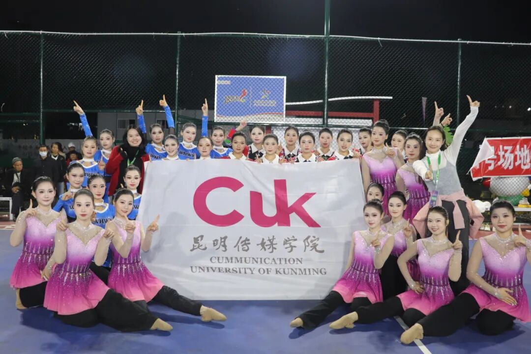 昆明传媒学院代表队非体育专业组在花球4级、爵士规定、自由舞蹈1、规定(同心共筑)四个项目中勇夺第一;双人花球、自由舞蹈2、自编民族健身操、有氧健身四个项目拿下第二;花球零级项目获得第三名;双人爵士项目则取得第四名的好成绩。