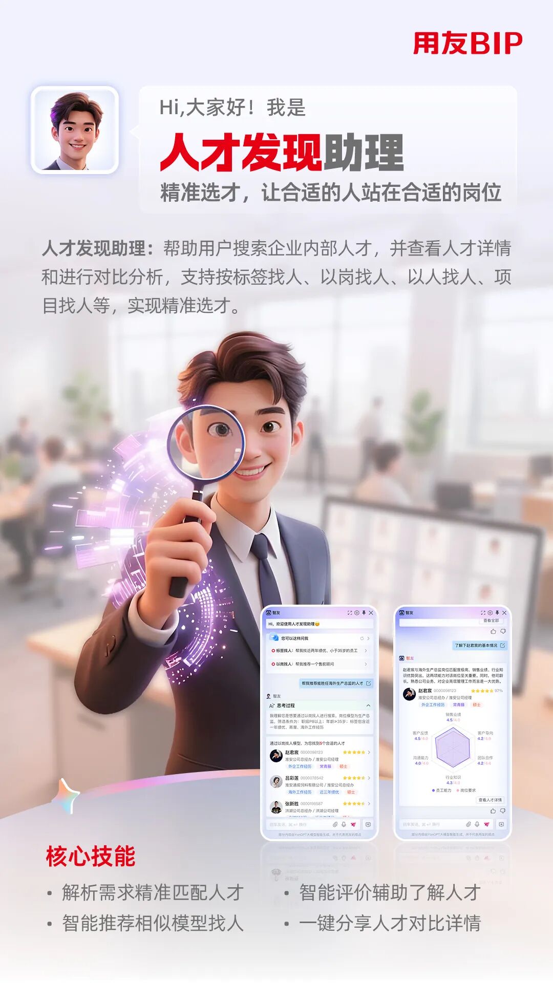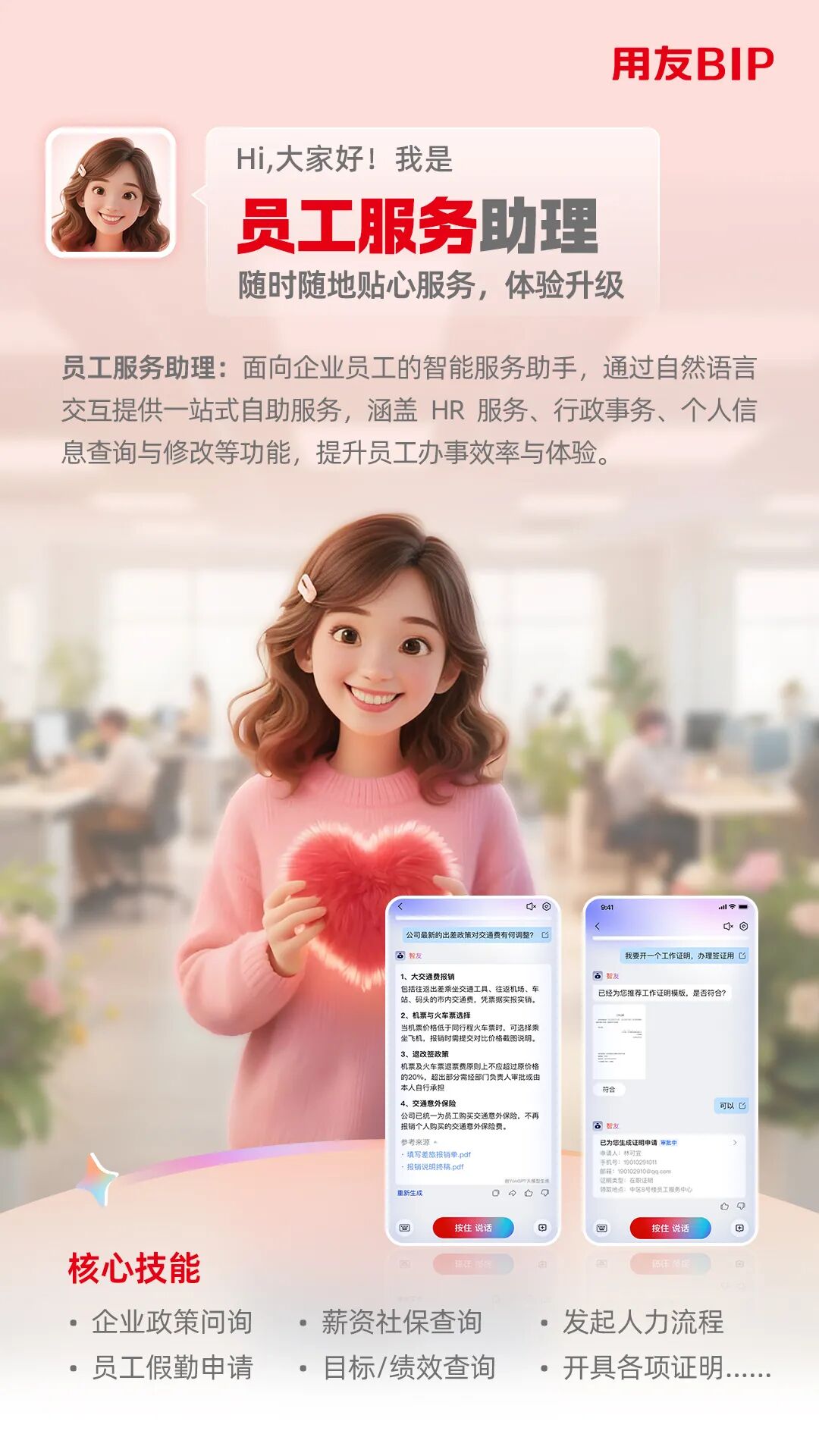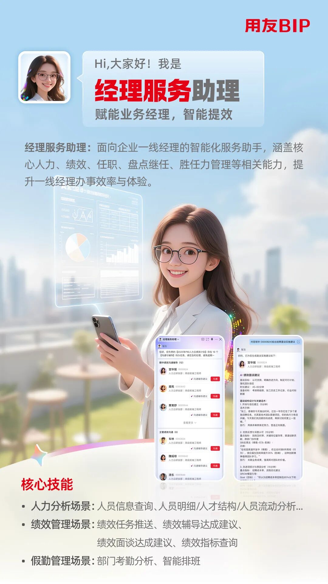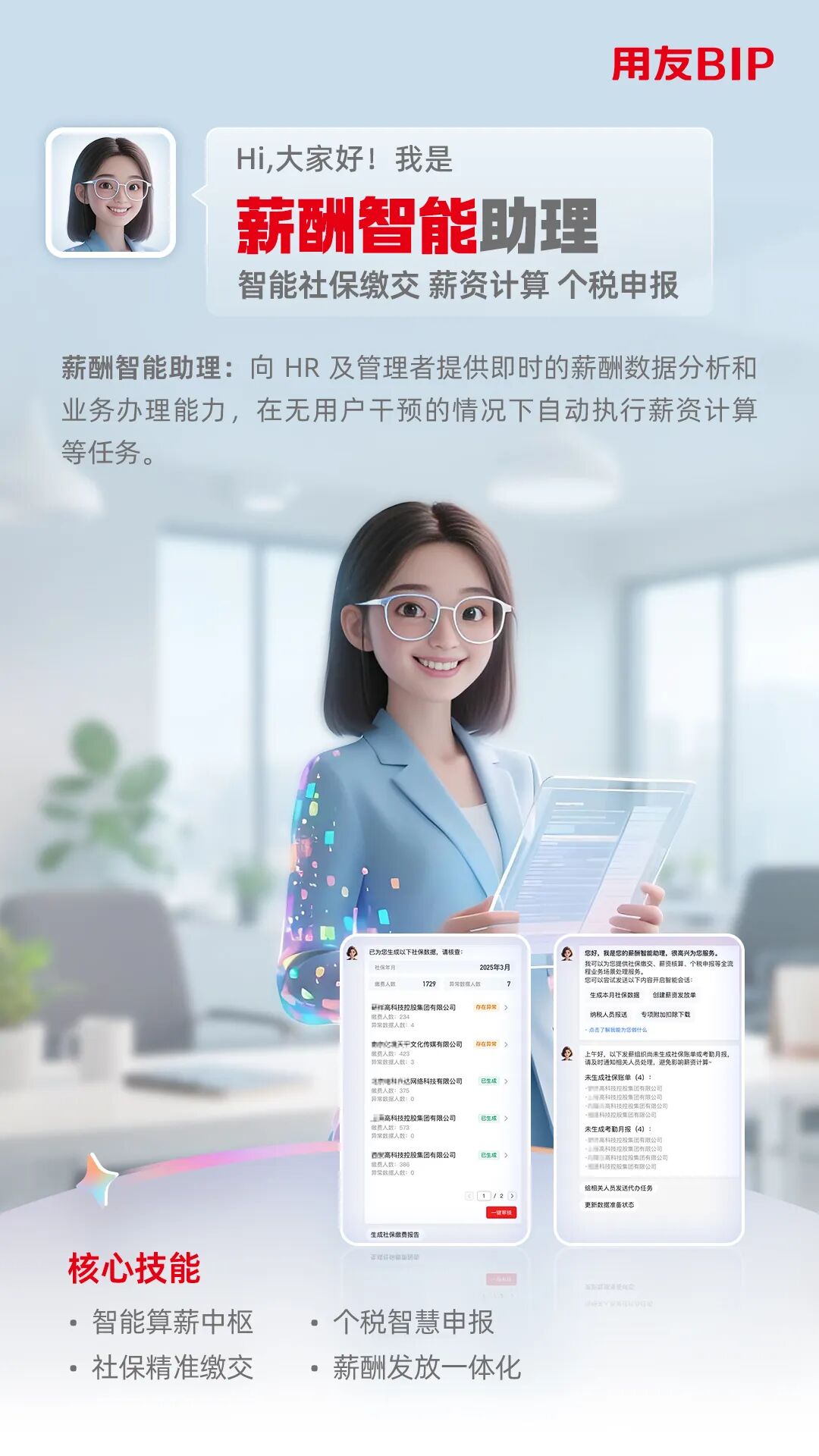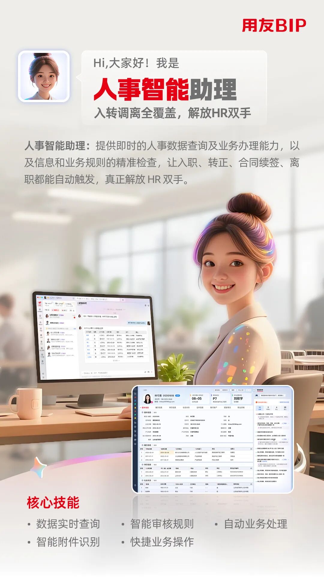 从业务场景的流程重构,到数据价值的深度挖掘,再到交互体验的全面升级,用友BIP人力智能体并非孤立存在,而是形成了“事务处理 - 数据支撑 - 服务协同”的完整闭环。它们不仅解放HR的双手,更重塑了人力管理的价值边界,成为企业提升组织效能、激活人才潜能的核心竞争力。