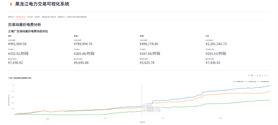 在10月电力现货市场试运行中,黑龙江场站交易团队敏锐把握市场节奏,成功实施高效的日滚动交易调仓策略。通过自研的模型预测和果断的执行,有效规避价格下行风险并捕捉价格上行空间。最终不仅实现日滚撮增收228万元,场站月度综合结算价更远超省内同类型电源平均价格。