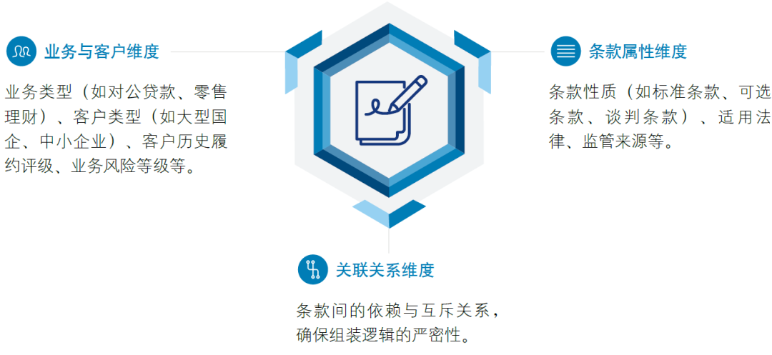 合同起草知识库:这是合同生成的“结构与逻辑中心”,其核心是“原子化”的合同范本条款库。该库将标准条款、备选条款进行精细化拆解,并为每一条打上多维度元数据标签。
