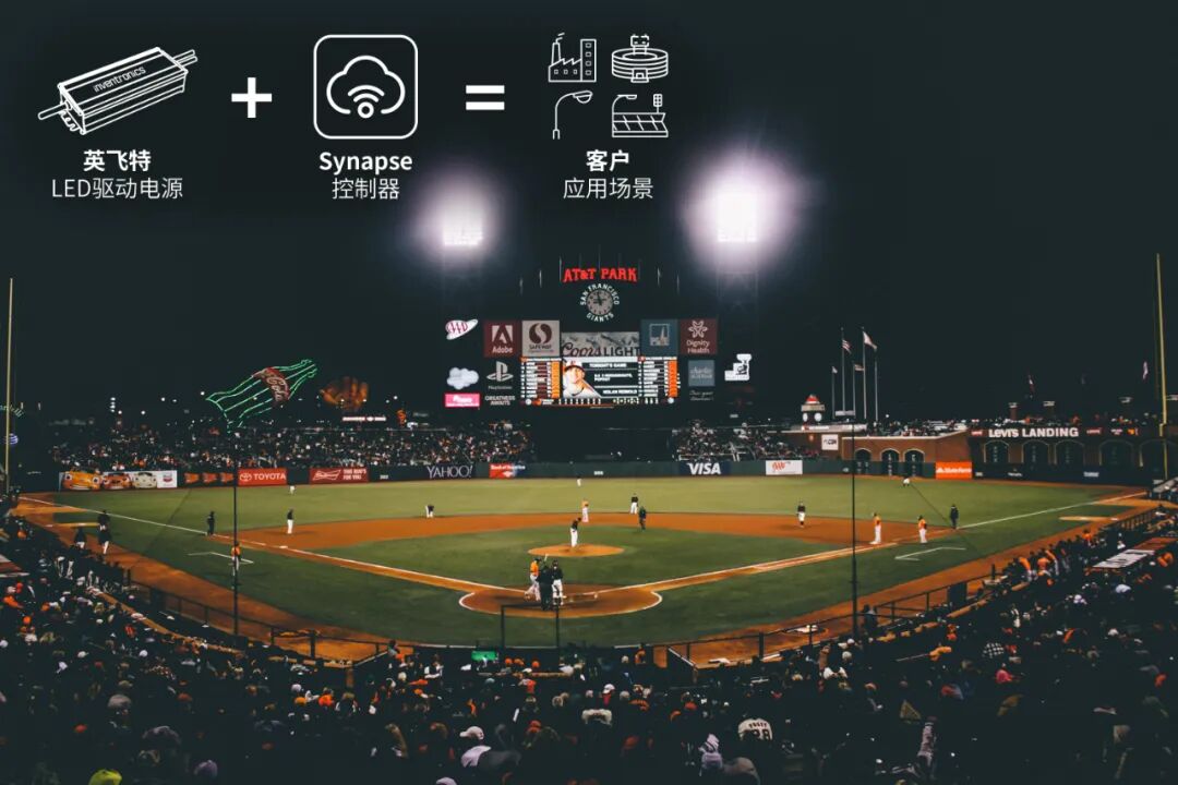 英飞特以其在LED驱动电源领域的专业能力闻名,而Synapse则以其先进的照明控制解决方案及SimplySnap云软件著称。双方强强联合,共同为客户打造专业、协调的体育与户外应用场景一体化系统解决方案。依托各自长期积累的丰富经验,此次合作确保系统在配置上更为成熟、运行更为稳定。