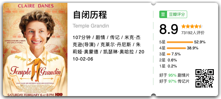 关闭服务号设置“消息免打扰”,不错过我们每一次推送!本期推荐7部女性主角的影片,这些故事里的女性,有人安静抵抗,有人大胆翻盘,她们都在用自己的方式撕开命运,成为自己生命里的光。本片根据自幼患有自闭症的美国动物科学家、畜牧学博士——天宝·葛兰汀的个人自传改编而成,讲述天宝与众不同的成长经历。