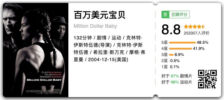 年迈的法兰基是一个有名的拳击教练,他的徒弟在拳击场上战绩辉煌。但因为太过于投身与拳击事业,忽略了家人的感受,法兰基与女儿的关系长期冰封,他亦因此陷入了长期的自我封闭和压抑。一天,一个对拳击有强烈兴趣的女子麦琪走进训练馆,请求法兰基受为门徒。坚毅的决心软化了法兰基,他终于决定把麦琪培养成出色的女拳击手。尽管路很艰辛,但是二人在训练和比赛中默契的相处磨合,令法兰基内心得到了亲情的抚慰,而麦琪也登上了拳击场。勇气和梦想让他们放下了往日的痛苦,心中有了新的力量。米粒 :最后四十分钟,弗里曼的旁白突然消失,电影就变得像一发催泪弹。看到“My darling, my blood”那里真是没法控制了。。。一部很不一样的拳击片,是关于“放手”的