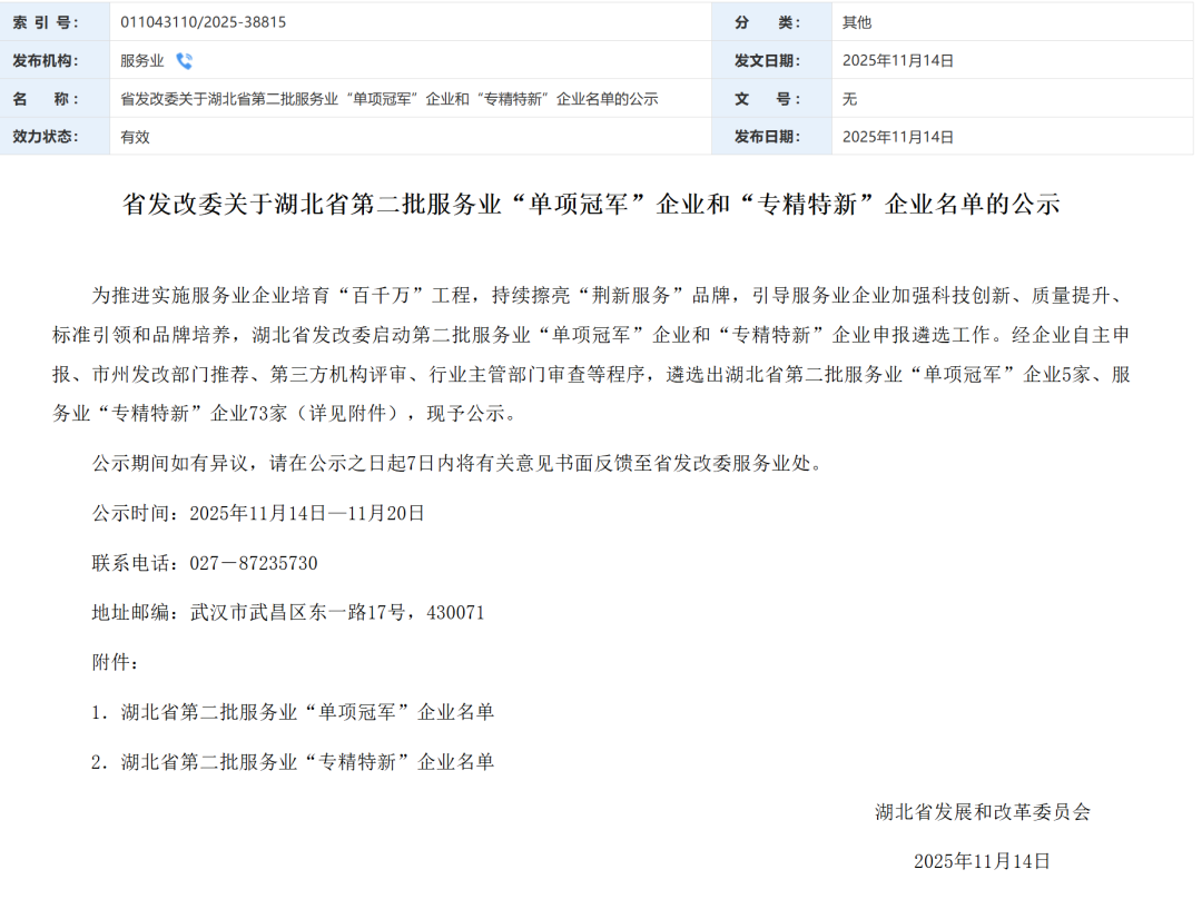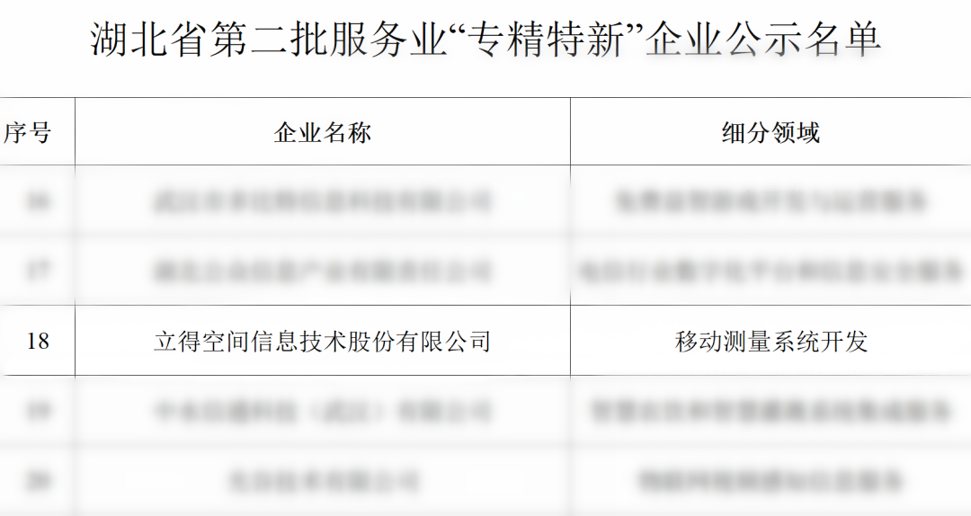 喜报 | 立得空间入选湖北省第二批服务业“专精特新”企业