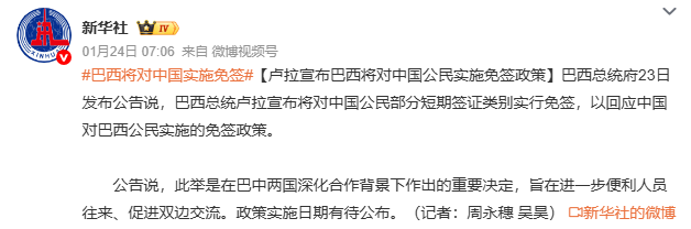 前不久,巴西总统宣布了巴西将对中国公民实施免签政策。