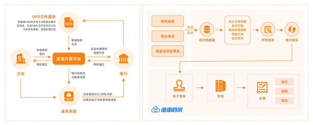 随着国家大力推广应用电子凭证会计数据标准的背景下,五芳斋积极响应国家政策导向,把握机遇,培育新质生产力,引入诺诺网“无纸化电子会计档案解决方案”。本次合作中,诺诺网为五芳斋提供与浙里办票平台和银行互联互通平台对接功能,同时帮助其实现电子凭证从获取、解析、入账、归档的全链路自动化处理,打通财务、报销、回单与档案系统,显著提升其业财及档案管理效率,进一步推动企业财务数智化转型。