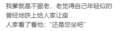 不论是玩年轻人爱玩的,吃年轻人爱吃的,还是些精力那充沛、惊险刺激的小活动,都是周大爷起名叫“周大爷不服老”的表现,反映出的是这届老年人内心深处爱折腾、不服老的精神。