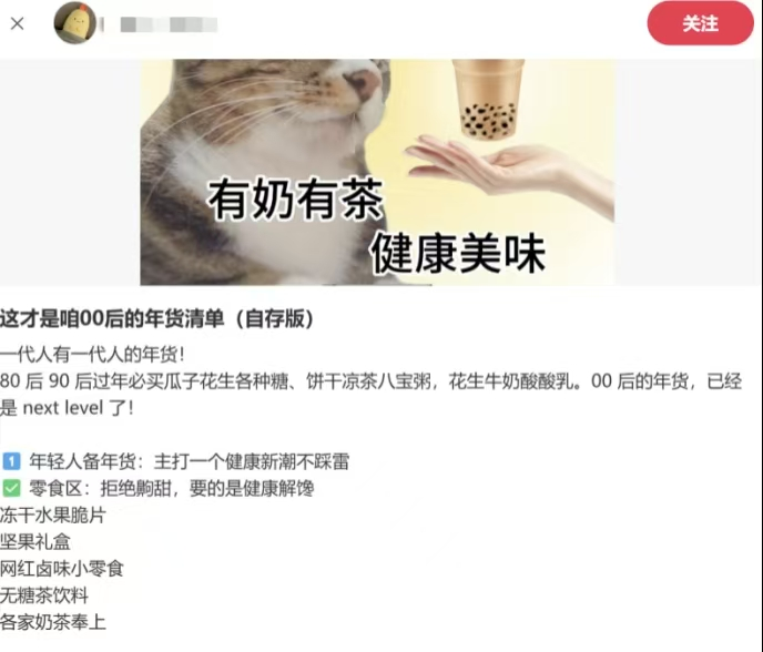 囤年货不仅拘于老几样,螺蛳粉、火鸡面、奶茶、车厘子齐齐上阵,爱吃啥就囤啥,年货清单全凭心意;