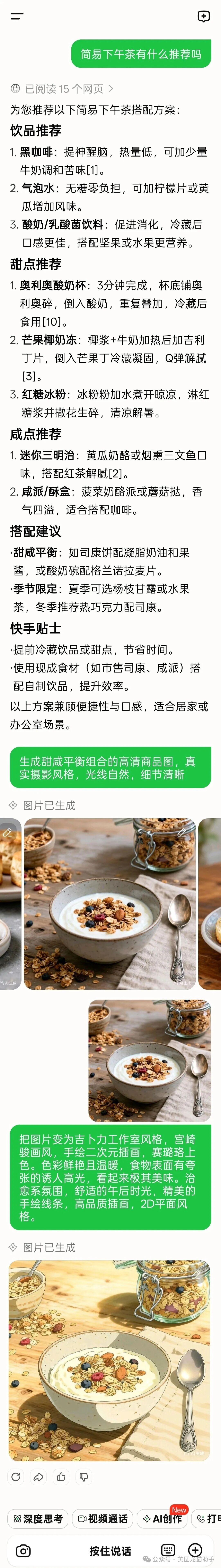 当别的AI还在思考时,龙猫已经给出答案;当你需要完美图片时,龙猫一次为你生成4张选择;当你需要最新信息时,龙猫已经主动为你搜索完毕。