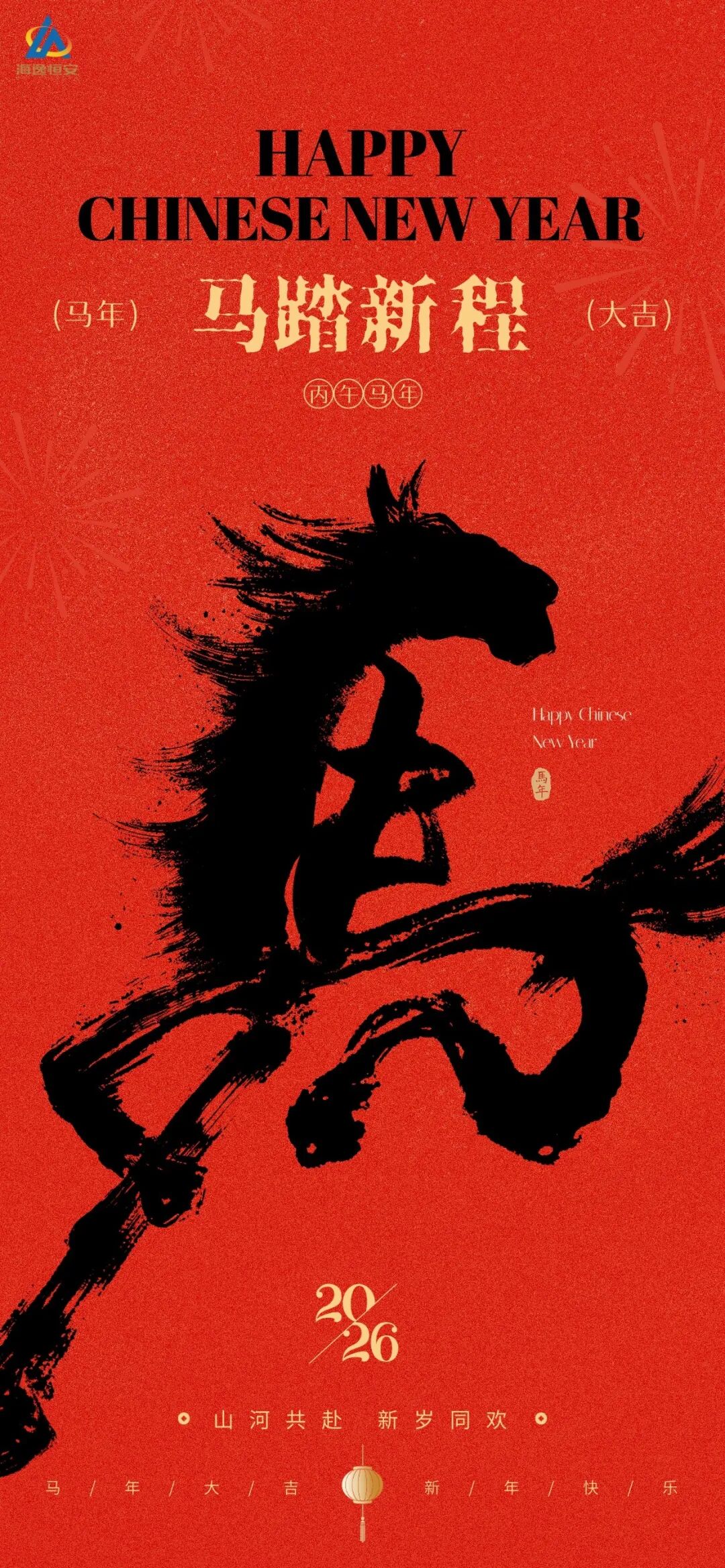 2026年,祝愿大家阖家幸福、马到成功、万事顺意!祝愿海逸恒安事业如骏马奔腾,势不可挡、再攀高峰!祝愿伟大祖国山河锦绣、国泰民安、繁荣昌盛!