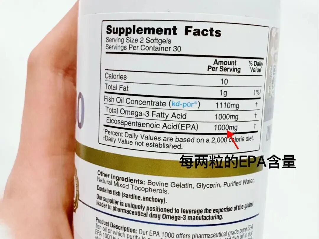另外,关注成分表里的 EPA 含量。有抗炎需求的话,EPA 含量越高越好。