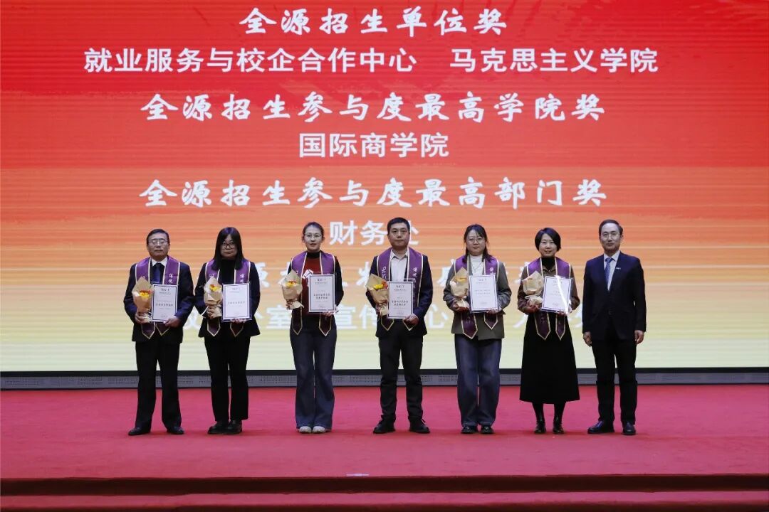 大会对2025年度涌现出的各类先进进行了隆重表彰。副校长蒲嘉陵宣读《关于表彰2025年先进集体、优秀团队和先进个人的决定》,以及2024-2025学年全源招生工作先进单位和个人名单,并对获奖个人和单位表达了祝贺。