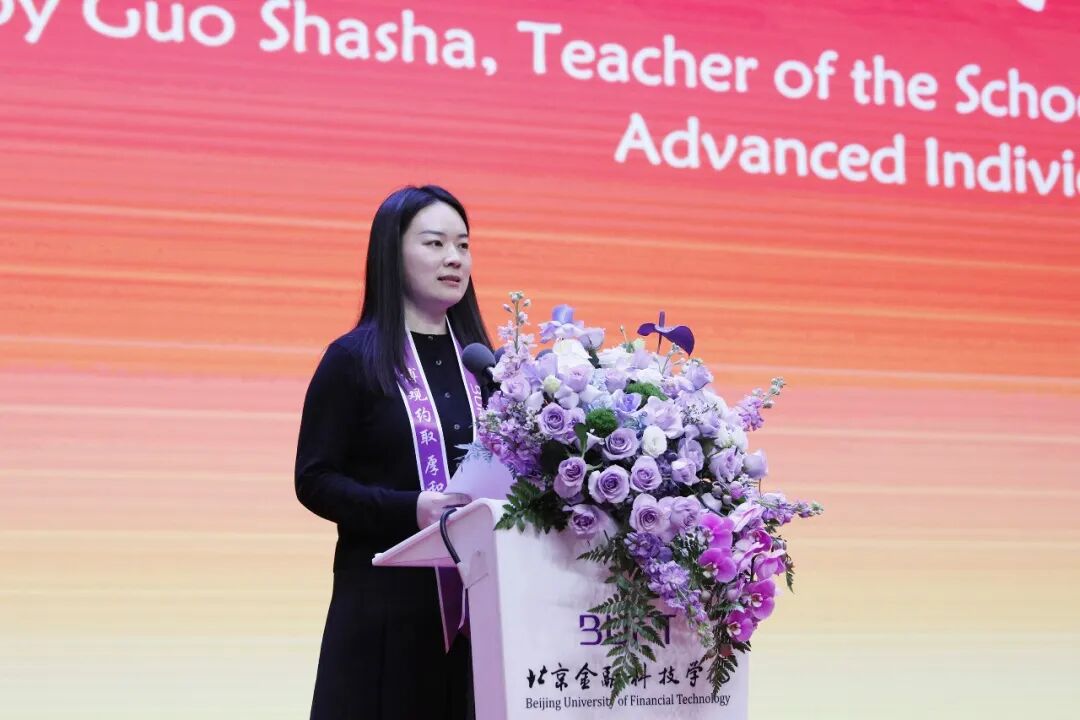 创意艺术学院郭沙沙老师作为先进个人代表发言。她表示,作为一线教师,这份荣誉属于我们每一个在平凡岗位上默默坚守的北金科人。“无边界育人”对我而言,意味着要打破讲台的边界,让知识不仅停留在书本,更要融入学生的成长旅程。未来,她将继续以课堂为阵地,以学生为中心,用心用情做好学生成长的引路人。
